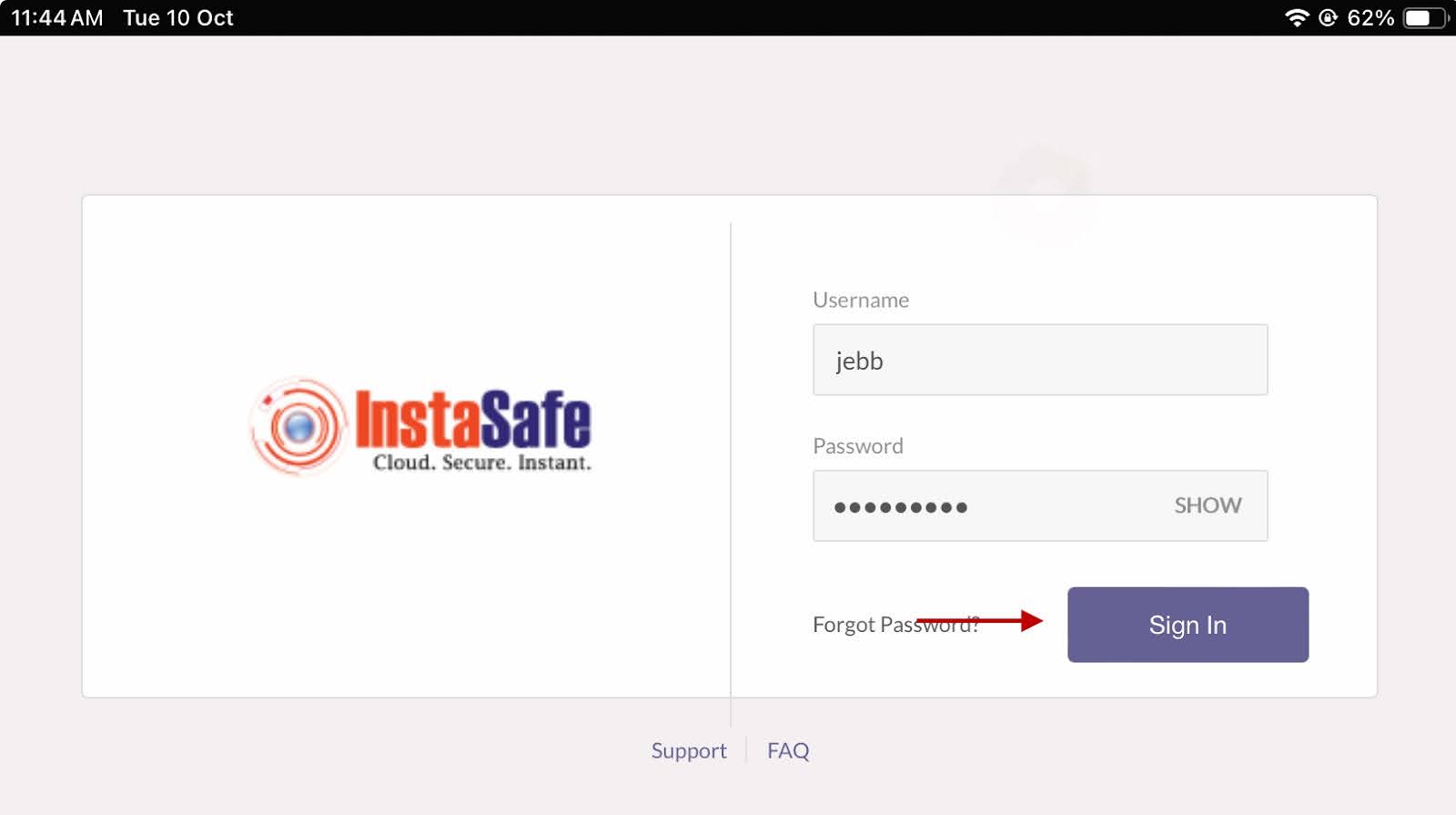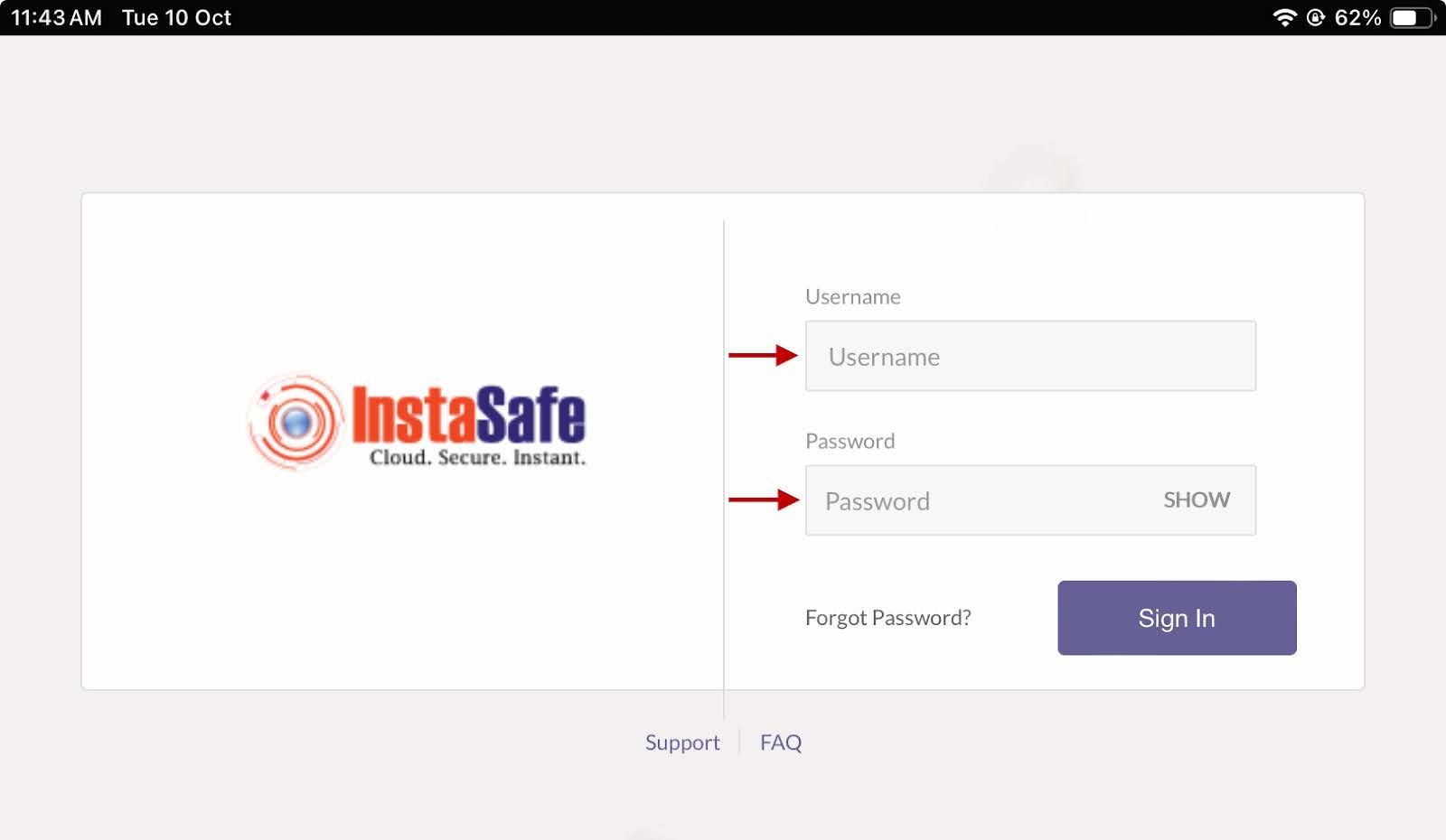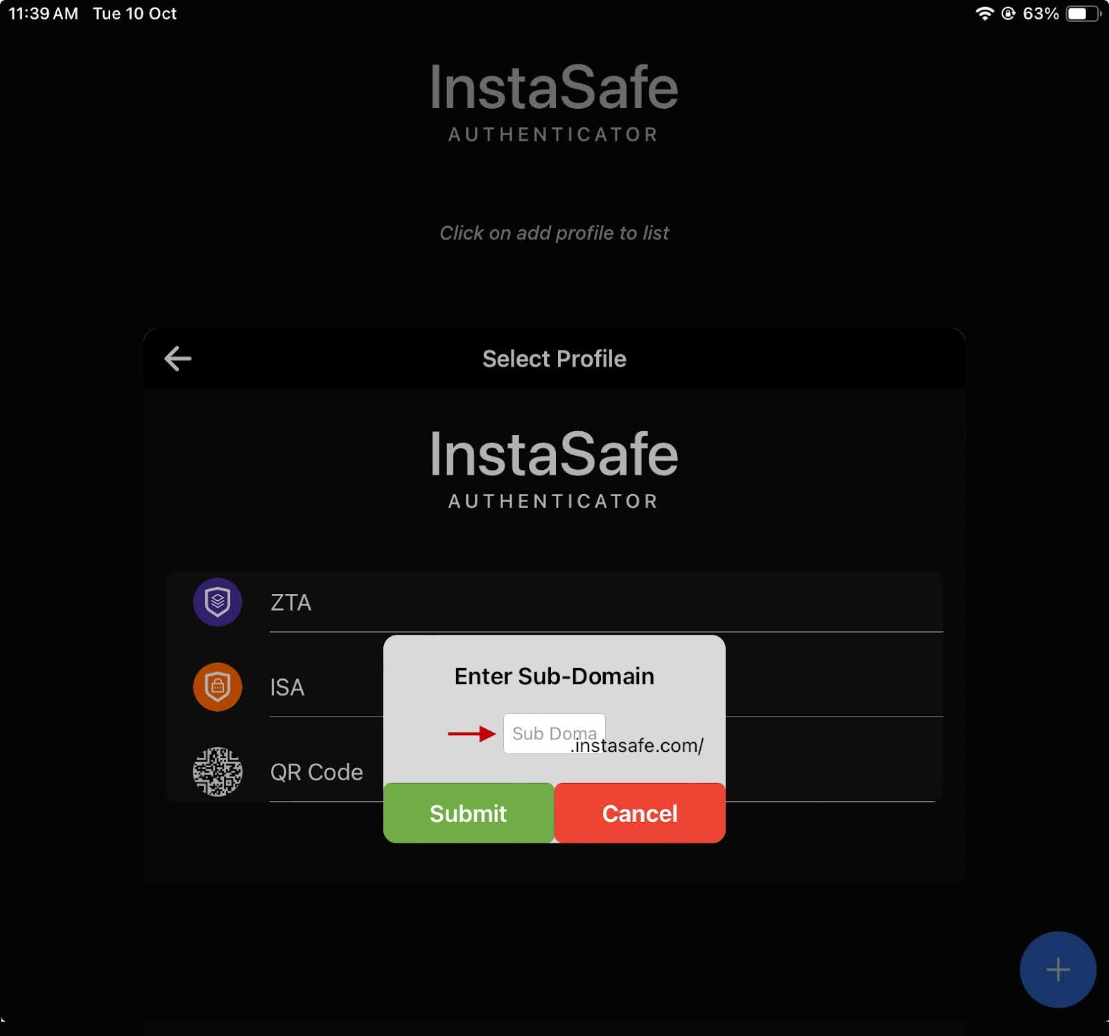 - Enter the sub-domain provisioned to your organisation by InstaSafe.