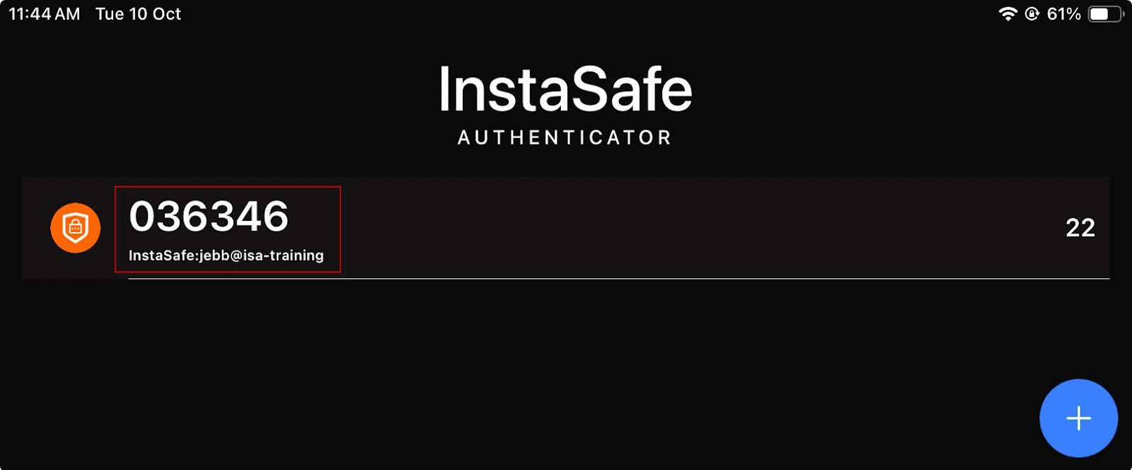 - Once the user is successfully authenticated, the user is added to the app. The TOTP pin for the user is displayed. A new TOTP pin is generated every 30 seconds. Use the pin for secondary authentication when accessing the ISA web console or connecting the ISA User Agent.
