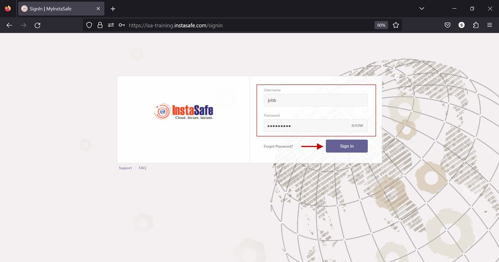 - You will be redirected to the ISA authentication page. Enter the username and password of the user.
