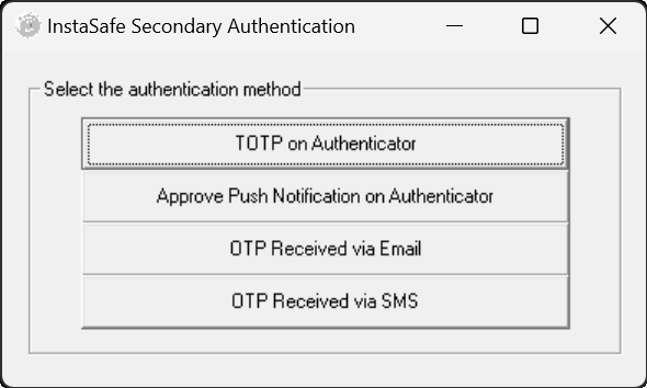 InstaSafe Authenticator supports TOTP and push notification-based approval. The Authenticator supports iOS and Android devices; however, the MFA push notification menu is not displayed for MacOS and Linux users. Instead, the OTP field is displayed without giving the option to the user to choose the method to receive the OTP.
