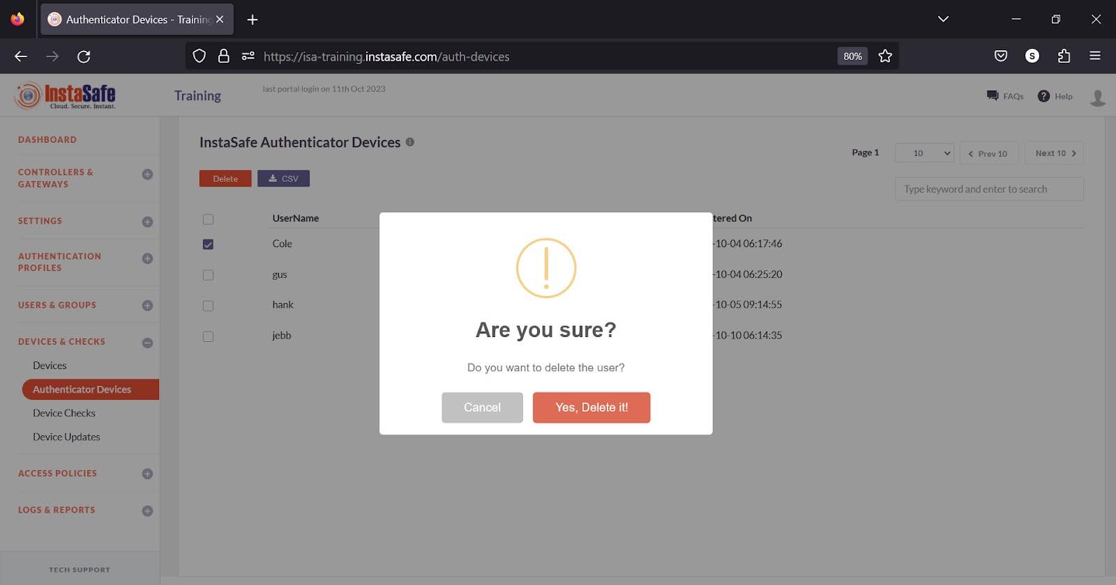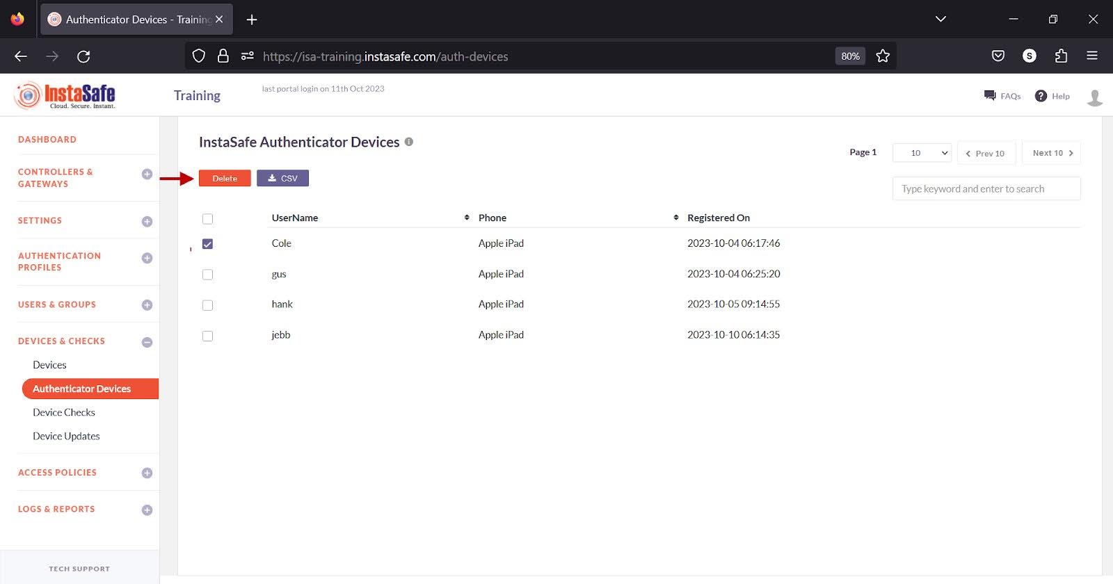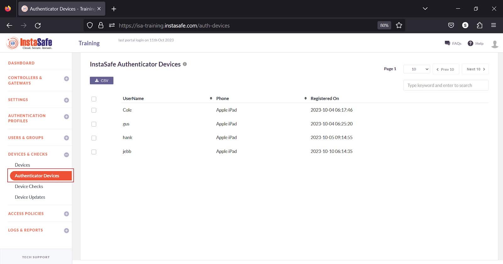 Authenticator Devices on the ISA Web Console