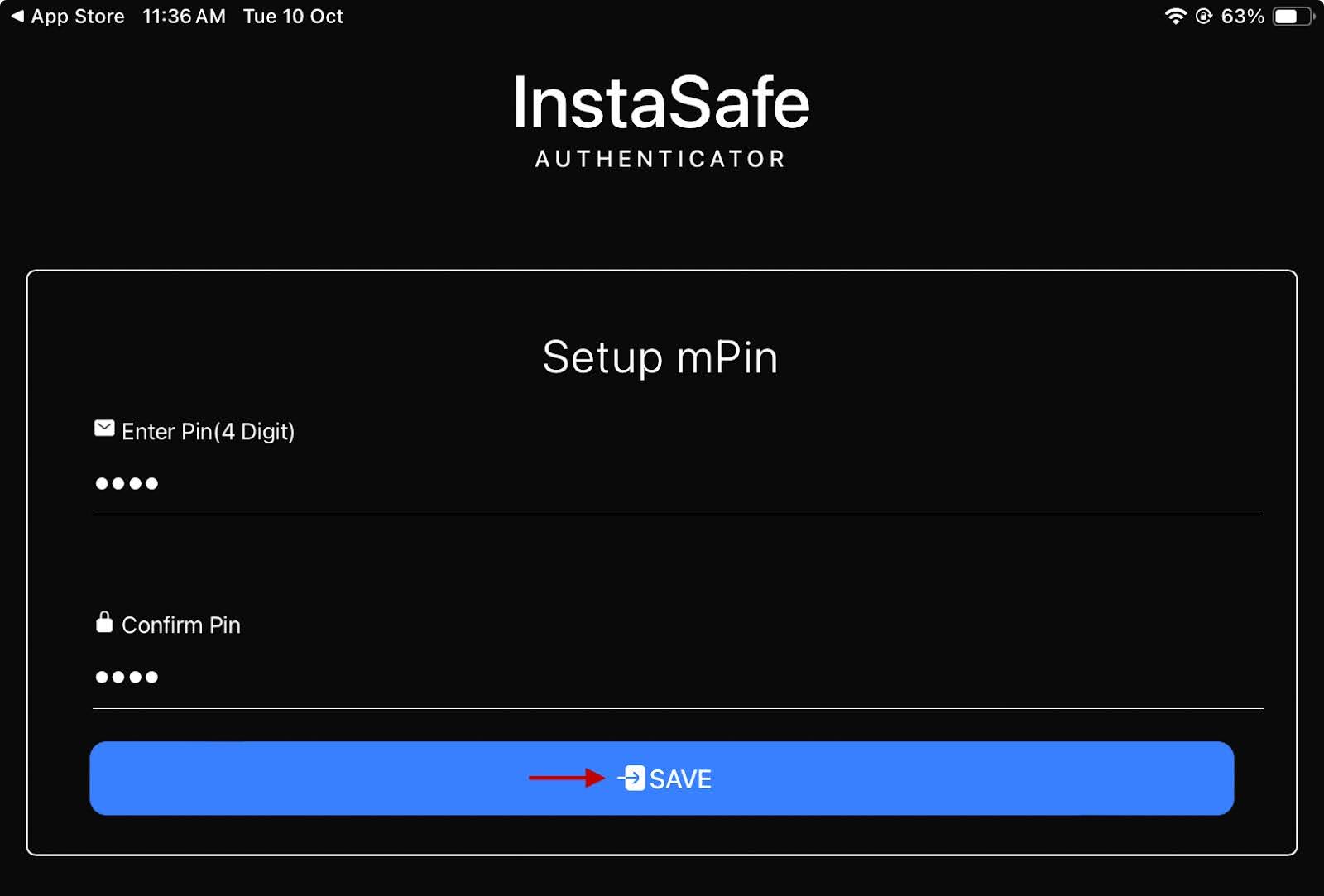 - On the Setup mPin, enter a pin to login to the app and confirm it.