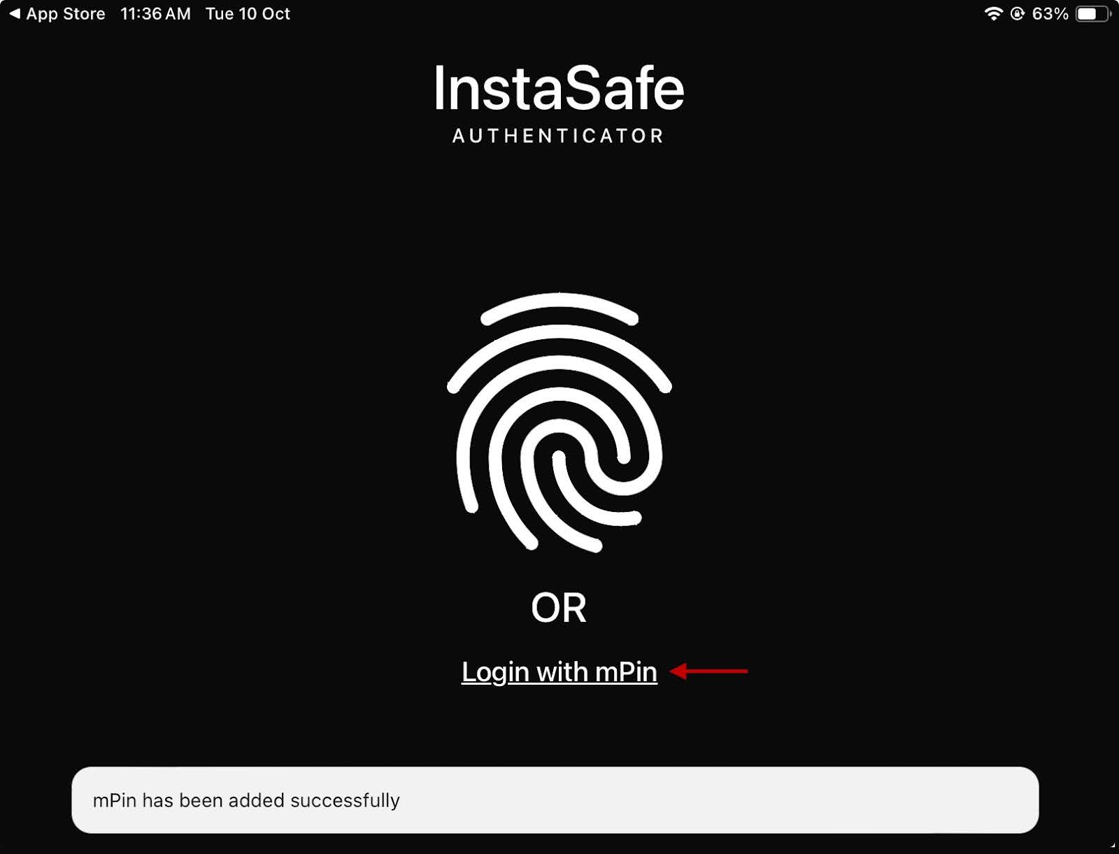 - On the home screen, select Login with mPin.